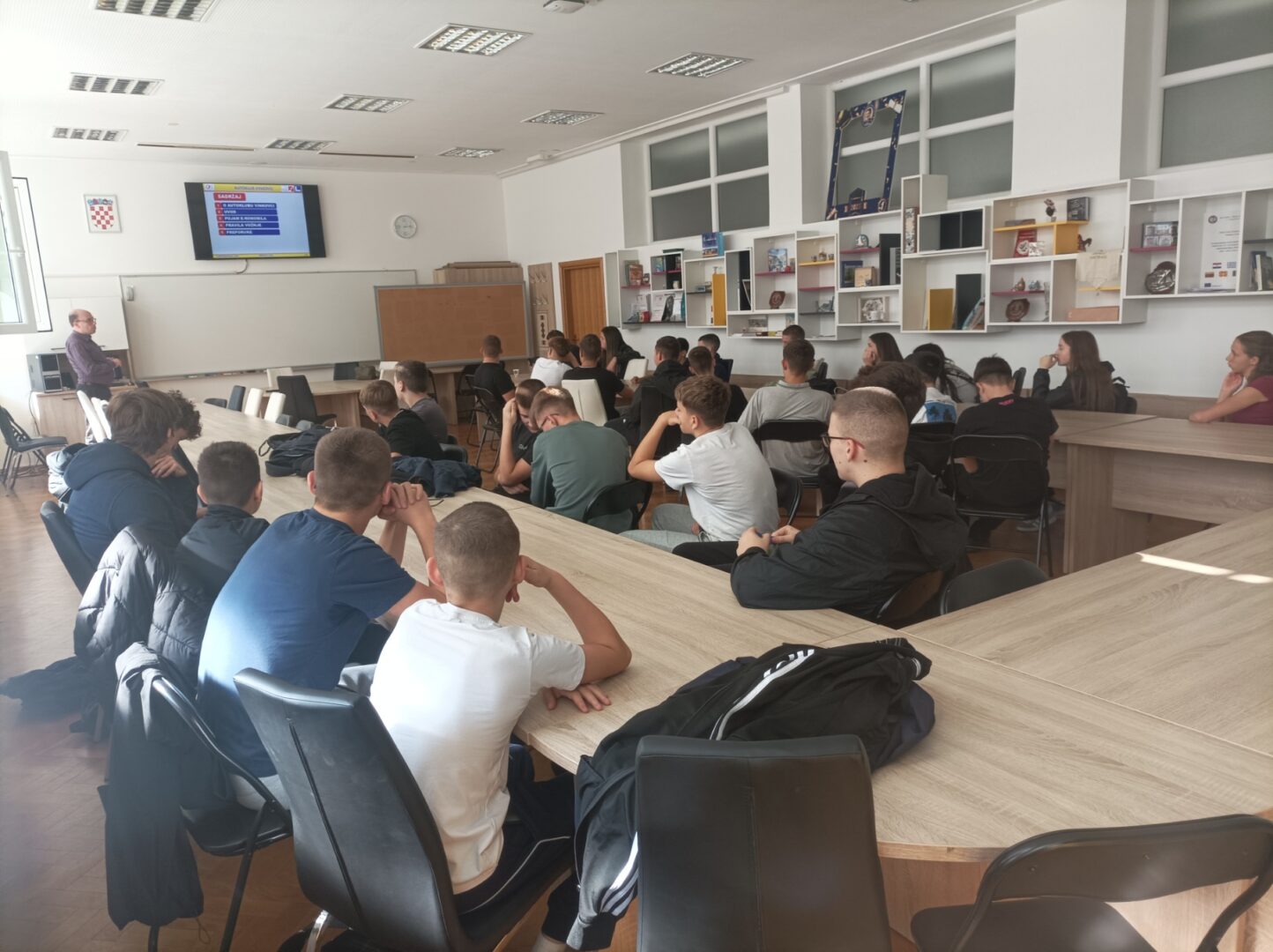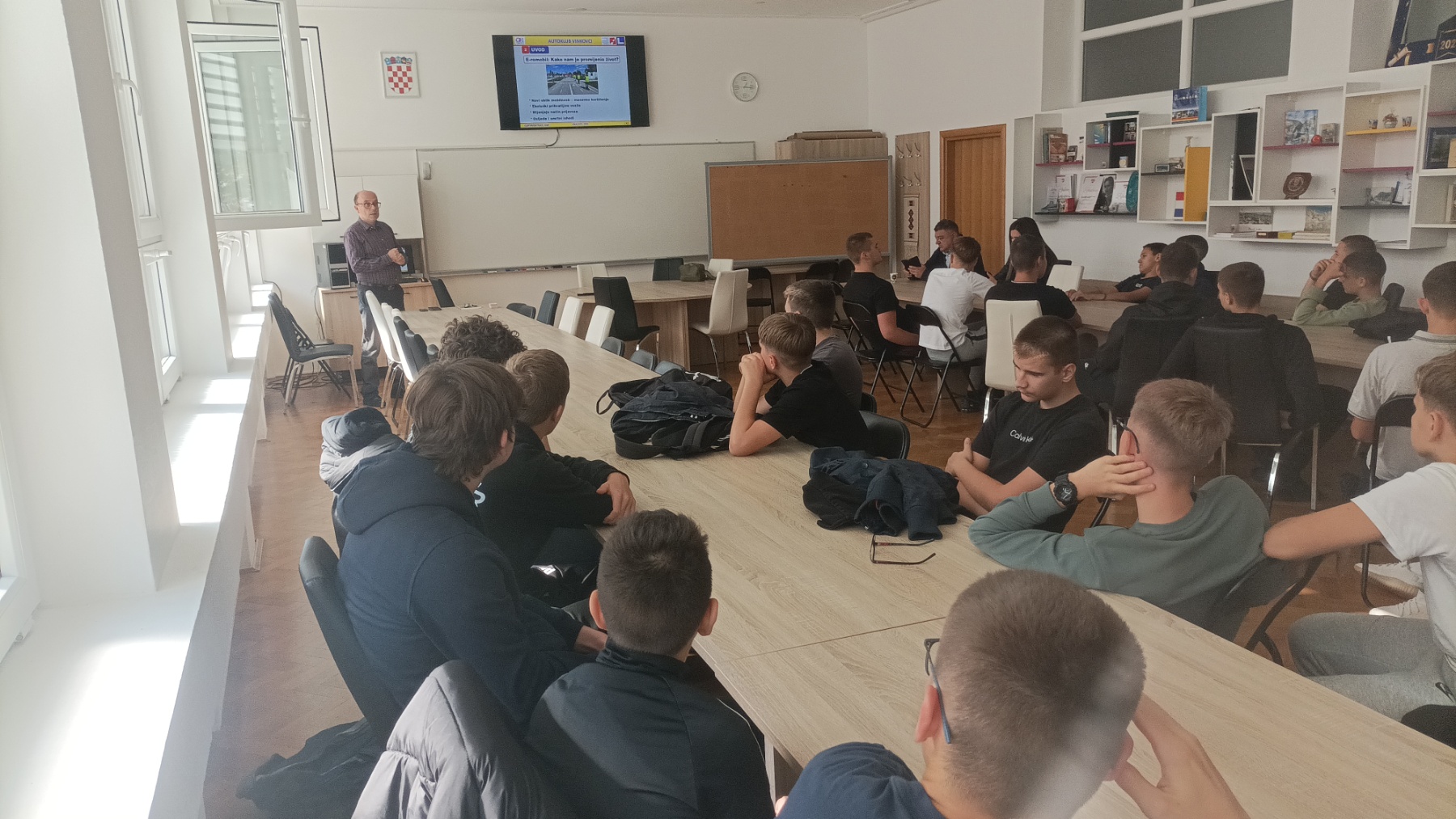Dana 17.10.25. godine u prostorijama naše škole održano je predavanje o sigurnosti u prometu na temu “Sigurnost vozača e-romobila”. Na predavanju su sudjelovali učenici prvih razreda , a predavač je bio profesor Damir Golub koordinator za sigurnost djece i učenika u prometu za našu školu.