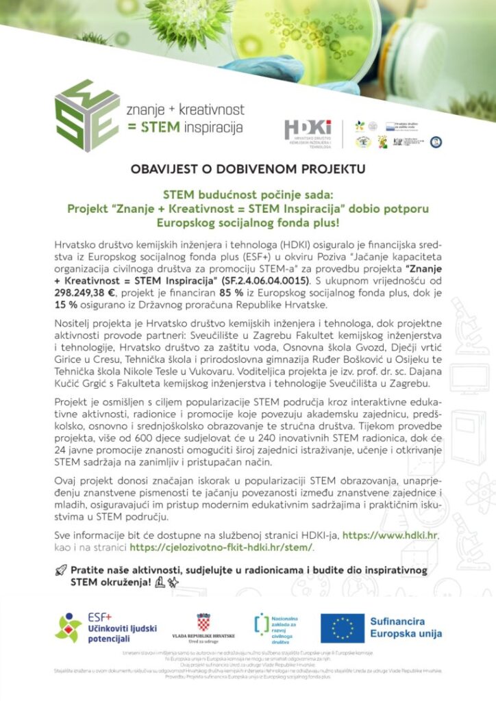 - STEM budućnost počinje sada: Projekt “Znanje + Kreativnost = STEM Inspiracija” dobio potporu Europskog socijalnog fonda plus!
